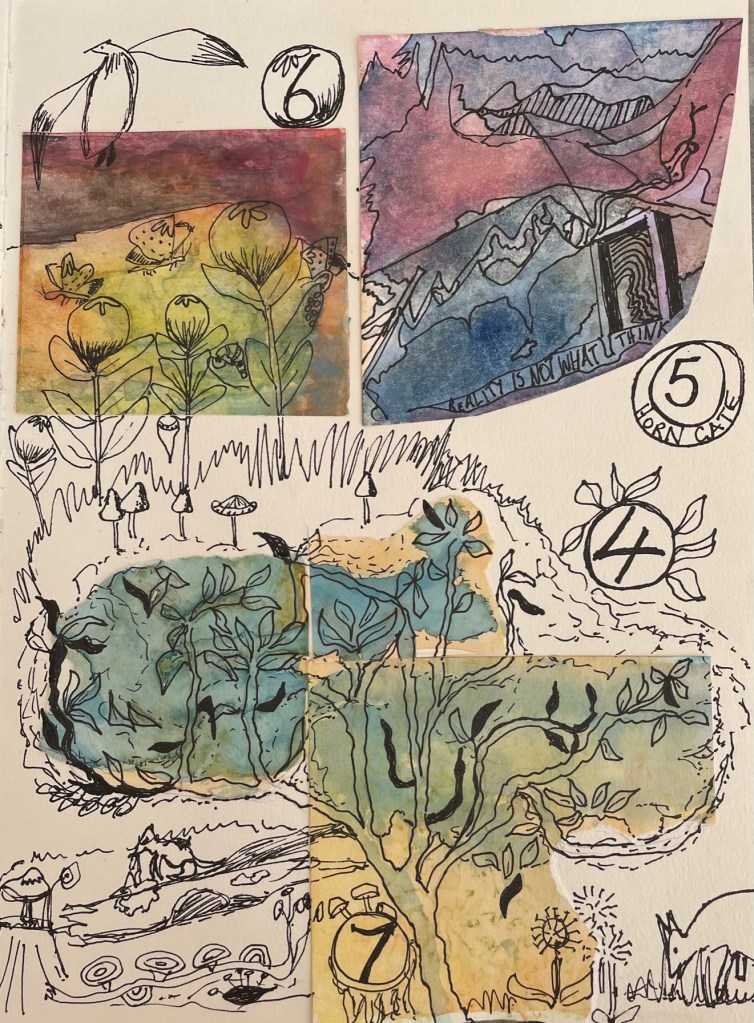 Here, in this cultural practice of applying pigments to paper, pasting scraps to paper bound in book-form, and drawing over the top with an ink pen made of petrol-based polymer filled with petrol-based ink?