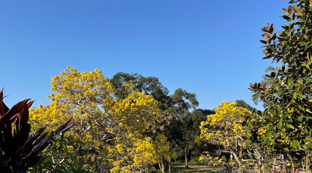 The Golden Trumpet Trees along Bamchory Court are a glorious spectacle as I come out for my walk