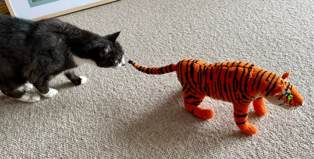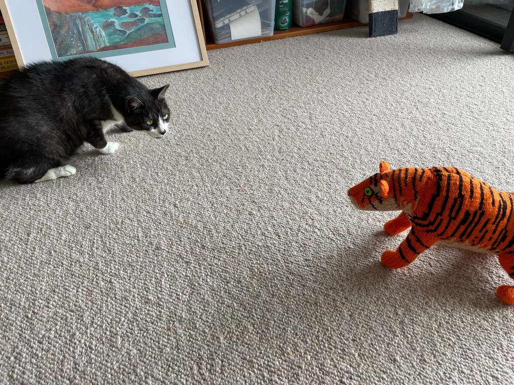 Look at it looking at me! No, I don’t like it! I’m going to sit under the couch for a while perhaps it’ll get bored and be when I come out.