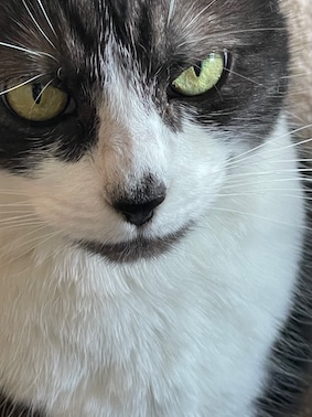 She did not allow me to pat or brush her. She scratched the furniture. She ripped up carpet. I trained her out of all those although patting and stroking her was always a dangerous move on my part. Having her sleep beside me sitting on the couch, laying so near she touched me with her back-end was as close as we got. Sometimes lately she allowed me to lay my arm over her back and just recently she allowed me to then scratch her under an ear.