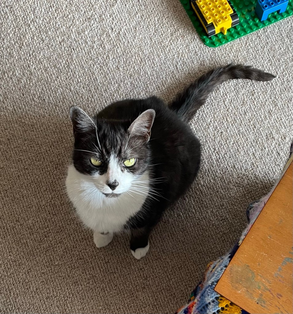 I’ve been in training. The first new habit I’m supposed to pick up is to scratch either one of the three objects she got into the house for that purpose—to be scratched!
