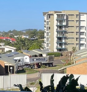 Well, they’re back today. At 8.30 AM a huge semi dump truck backed into Carinya’s main street, looking bigger than normal due to the littleness of the houses. That starting time, by the way, is due to the work being in a residential area. Normal construction industry starting times are 6.30 AM, or even 6 AM. An early start makes sense in spring summer and autumn, when temperatures may be over 30 Celsius.
