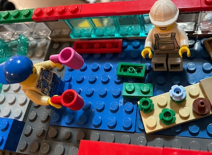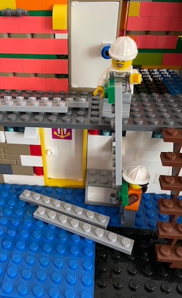 Next morning, while Dan, Drew and Nin raised a further two courses of bricks on the walls so that people wouldn’t hit their heads on the ceiling, Bosley invented his preferred front window using a glass door on its side and a few modified blocks.