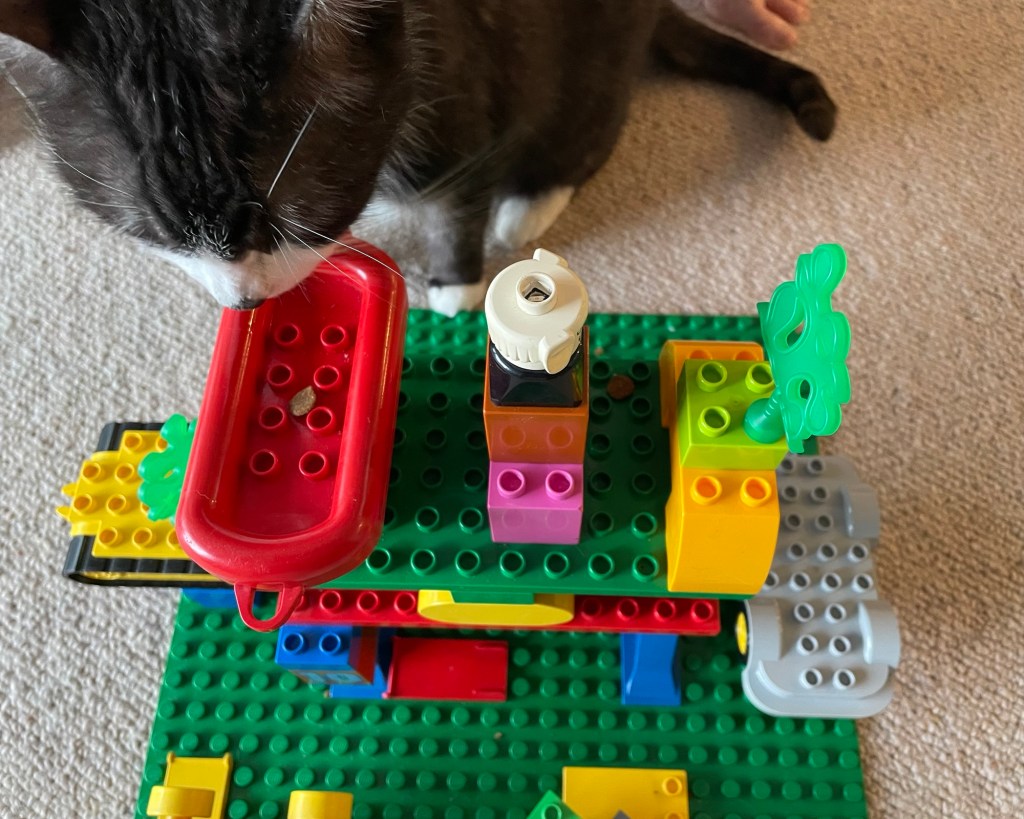 Even as the Hand-of-God, I was mystified as I went round smelling at them. Just rainwater, half a bucket full, that I couldn’t reach to drink. What were they for? Couldn’t be for animals to drink from. I just proved that.