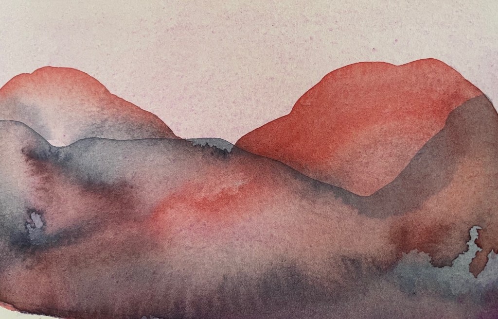 I can’t believe how well this watercolor sketch I did a few years ago illustrates an alien cloning bath. The warmth with steam rising in the left foreground, the bleak winter weather in the background.