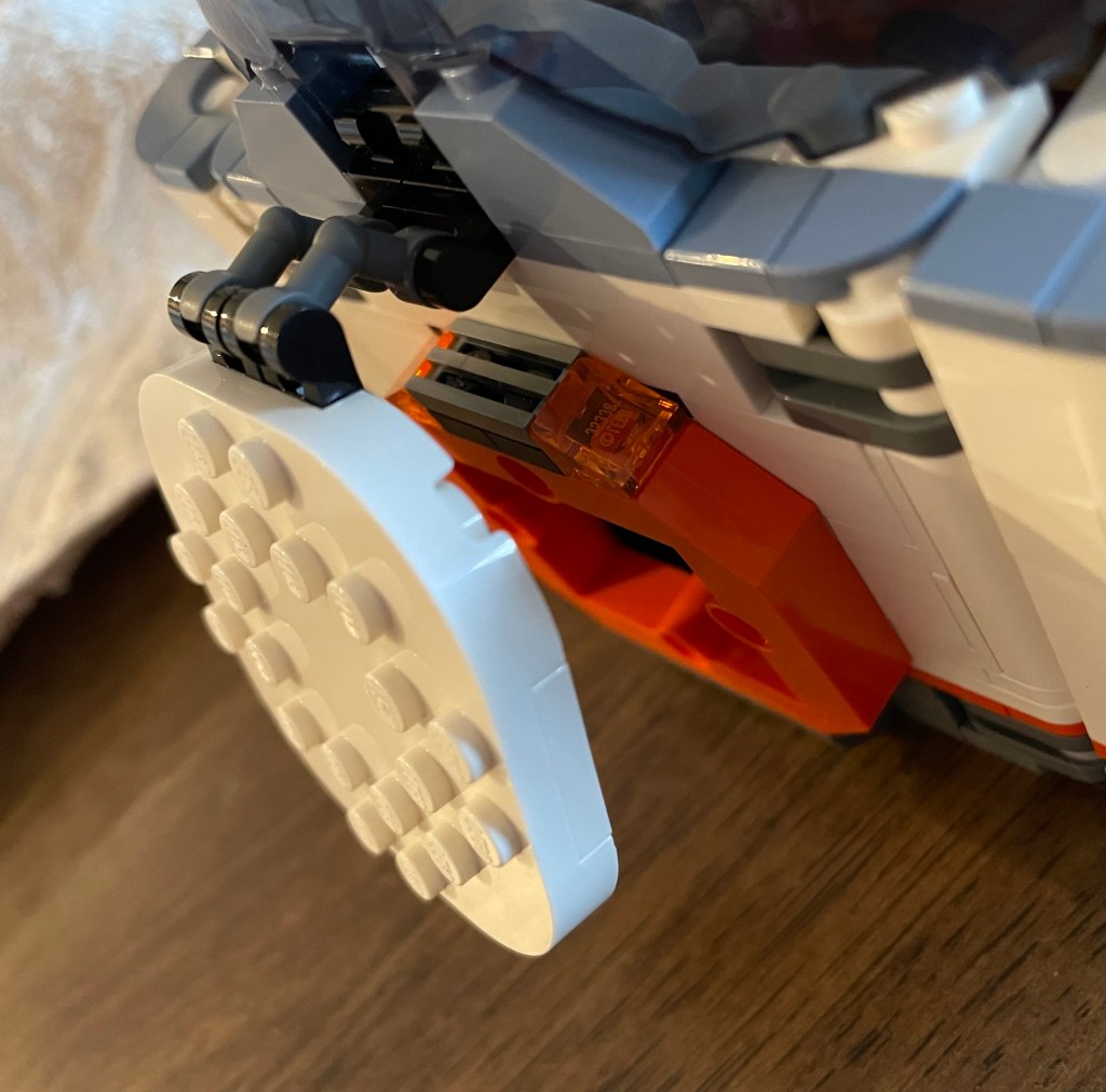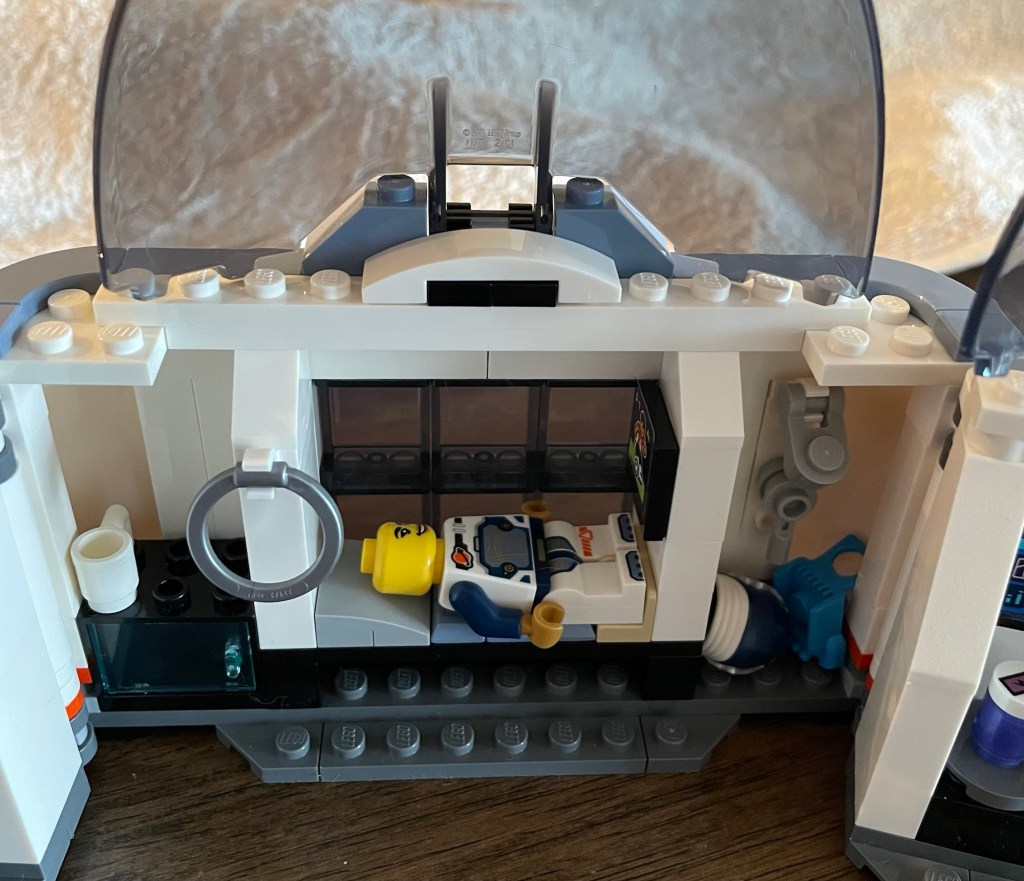 Which was a lucky guess for it held a girl minifig, helmet, airpack, a bed/couch, microwave, mug, coffee machine and a bank of windows. In other words, a collection of playable elements.