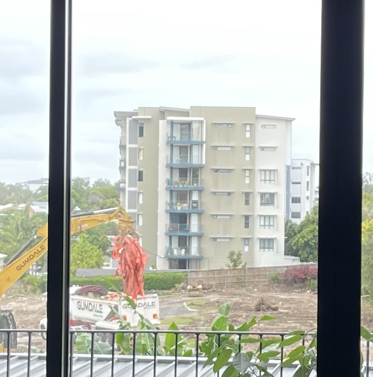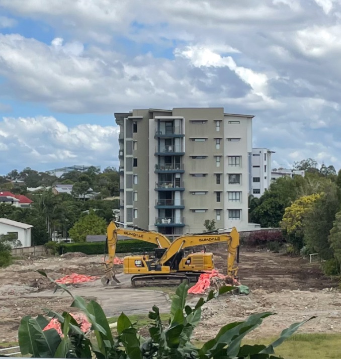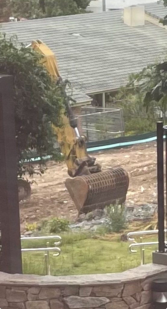 Thursday 12 September, day 11 of the build, there were two excavators on site … one that began ripping out concrete in the northern corner to the side of Carinya.