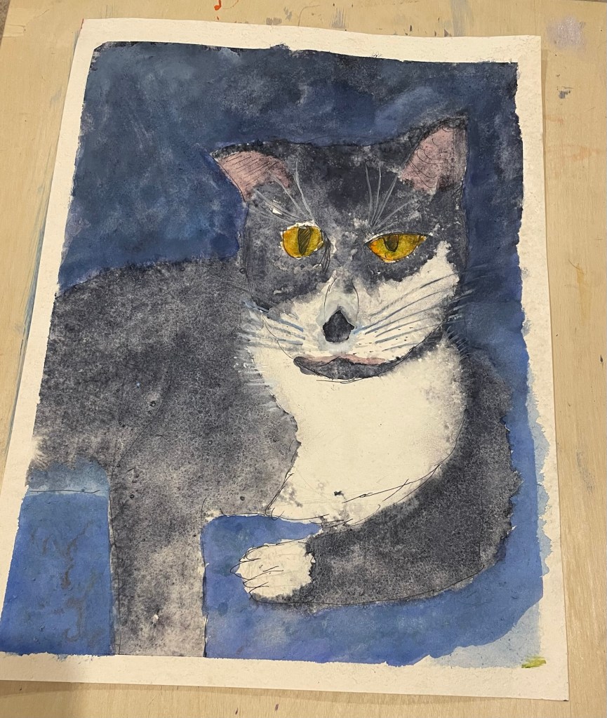 So I’ve fallen in love with granulating paints. My first effort was Miss Tabitha…